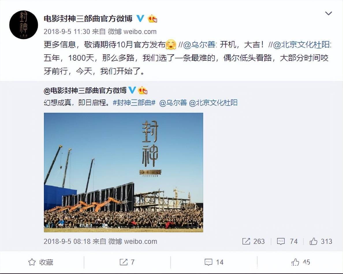 早在2014年,乌尔善就开动构念念《封神三部曲》,其时电影市集正在快速发展,电影主控方北京文化春风温顺,因此才会启动如斯浩大的技俩。历程长达4年的推敲,电影才完成演员取舍和培训。